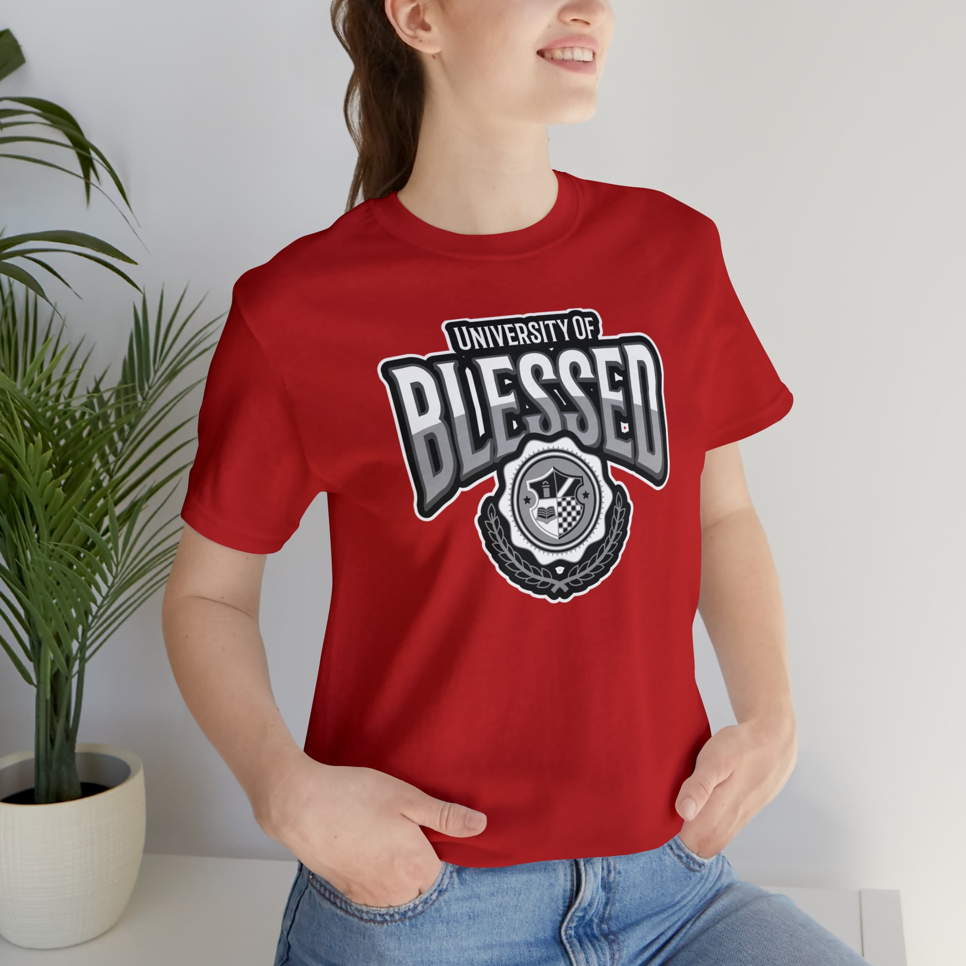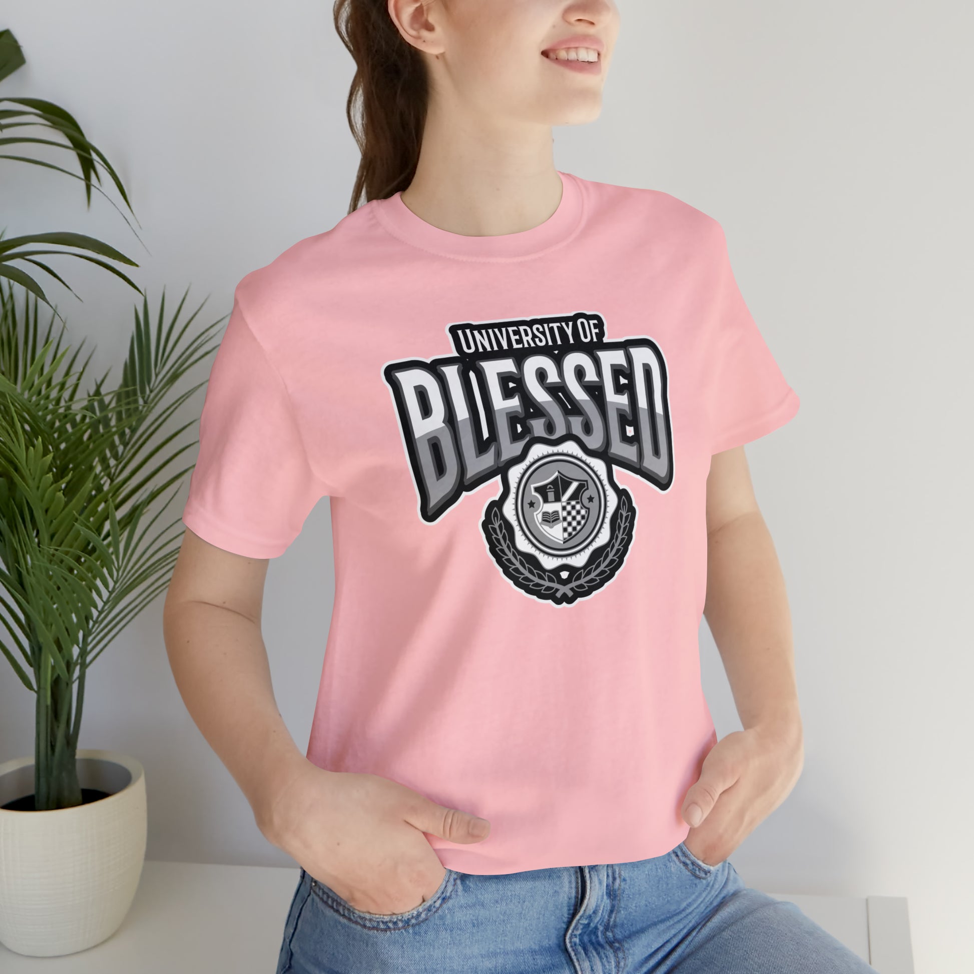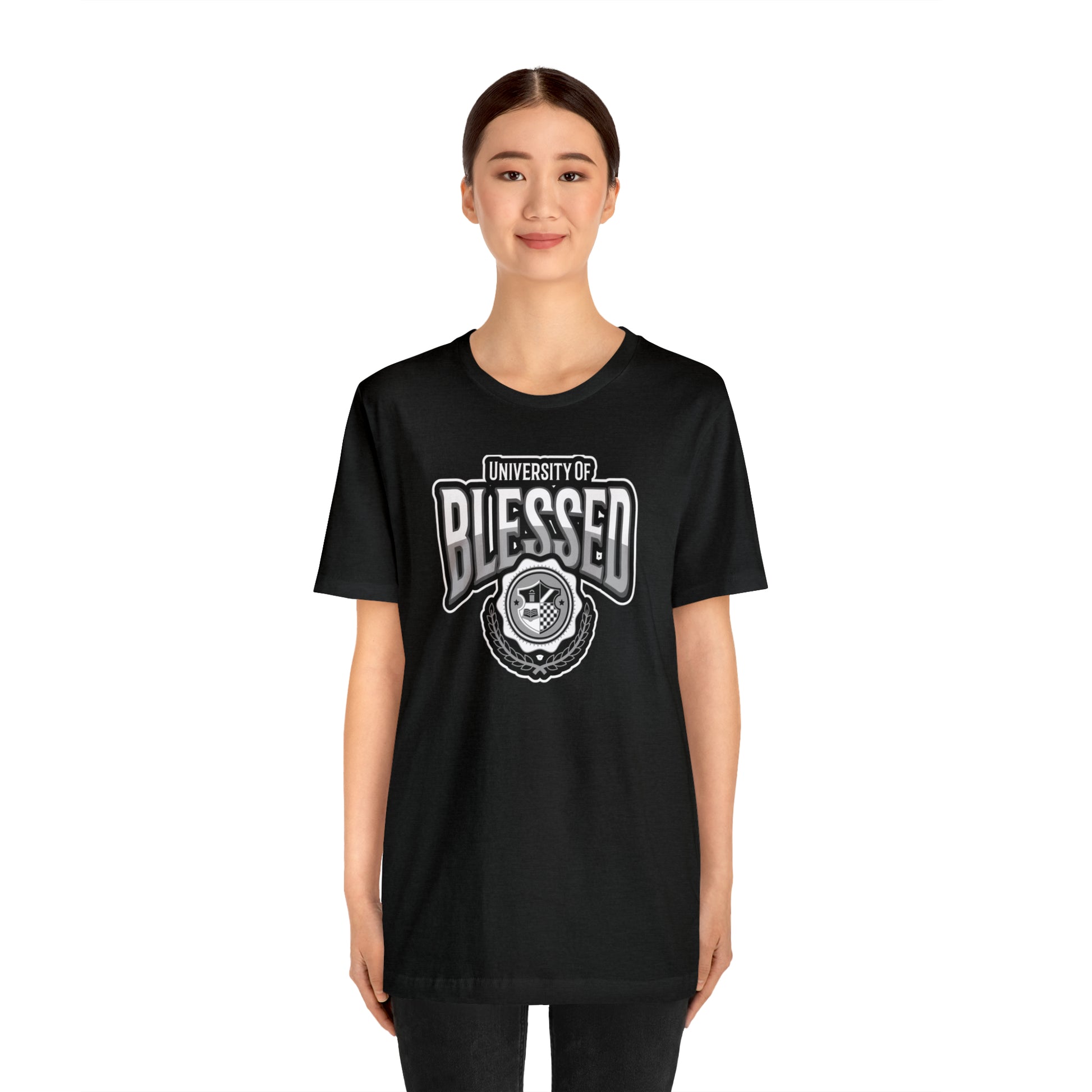 This Univ. of Blessed Alma Mater T- Shirt is perfect for anyone who wants to stay comfortable and stylish at the same time. Whether you're running errands or lounging at home, this T-shirt is sure to become your new favorite.